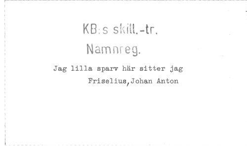 //// KB:s skiti.--tr. //// Name eg. //// Jag lilla sparv här sitter jag Friselius Johan Anton ////