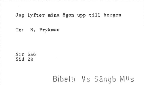 //// Jag lyfter mina ögon upp till bergen Tx: N. Frykman //// N:r 556 Sid 28 //// Bibeltr Vs Sångb Mus ////