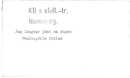 //// KB:s //// Namnr og. //// Jag längtar jämt om dagen //// Thulin,Nils Niklas ////