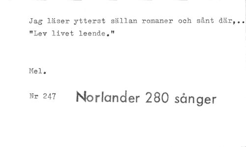 //// Jag läser ytterst sällan romaner och sånt där,.., "Lev livet leende." //// Mel. //// Nr 247 Norlander 280 sånger ////