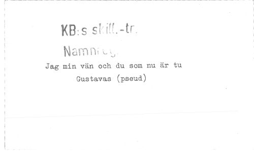 //// KB:s //// Narrt L.„ //// Jag min vän och du som nu är tu //// Gustavas (pseud) ////
