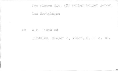 //// Jag minnes dig, när mörker höljer jordaa Den BOrtg:Ingne //// hk A.F. Lindblad //// Lindblad, Sånger o. Visor. H. 11 o. 12. ////