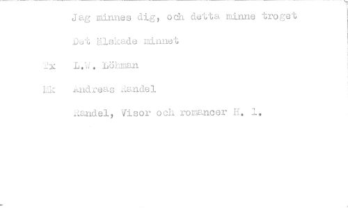 //// Jag minnes dig, odh detta minne troget Det älskade minnet //// L.W. Löhman //// Llk Andreas ..andel //// Aandel) Visor och romancer H. 1. ////