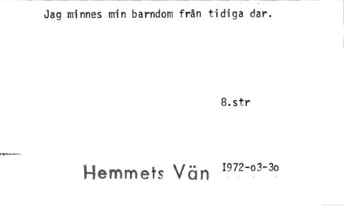 //// Jag minnes min barndom från tidiga dar. //// 8.str //// Hemmets Vän I972-o3-3o ////