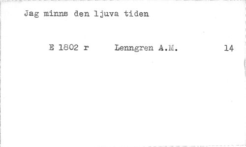 //// Jag minna den ljuva tiden //// E 1802 r Lenngren A.ii. 14 ////