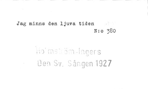 //// Jag minns den ljuva tiden //// N:o 380 //// r». i (1ErS //// Oen Sv. Sången 1927 ////