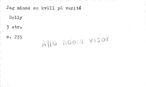 //// Jag minns en kväll på varit4 Dolly //// 3 str. //// s. Aba tides ViSOr ////
