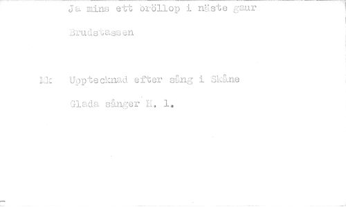//// Ja mins ett 'bröllop i näste gaur Bruds'tass en //// Uop t e cknad efter sång i Skåne Glada, sånger E. 1. ////