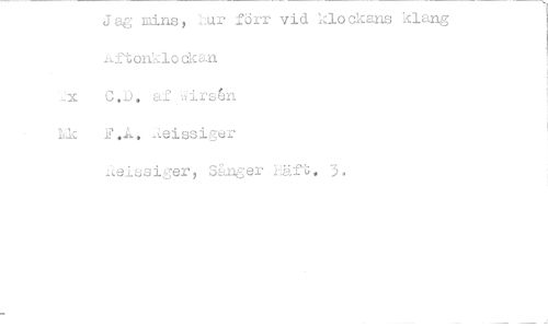//// Jag mins, Lur förr vid klockans klang liftonklockan //// C,D. af iirsn F.A. ieissiger //// lieissiger, Sånger käft. 3. ////