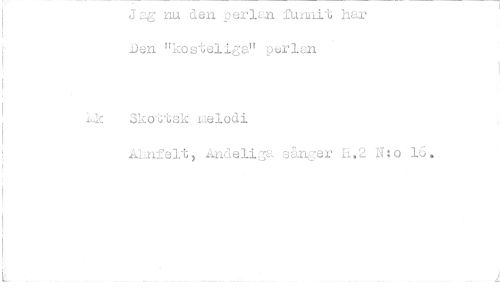 //// J ag. nu den. p erlan funnit har Den "ko ste1iga" perlm //// idt Sko i;tsk uelodi //// Ahnfelt rl.ndeliga sånger H.2 N: o 16 . ////
