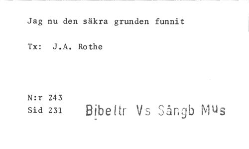 //// Jag nu den säkra grunden funnit Tx: J.A. Rothe //// N:r 243 //// Sid 231 Bibettr Vs Sångb Mus ////