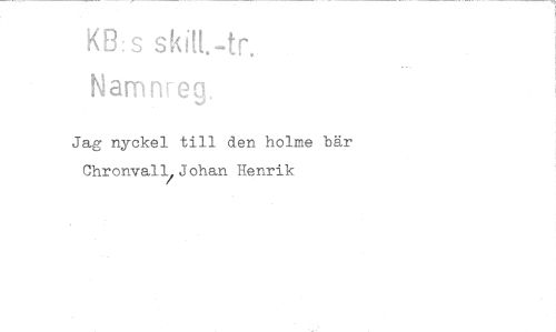 //// KB: s //// Namnreg //// Jag nyckel till den holme bär Chronvall Johan Henrik ////