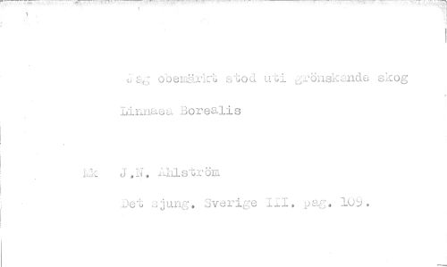 //// Jeg obemärkt stod uti grönskande skog Linnaea Borealls //// j.N. 211ström //// ..Det sjung. Sverige LLI. pag. 109. ////