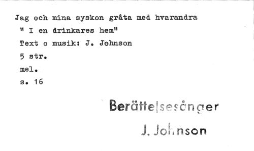 //// Jag och mina syskon gråta med hvarandra " I en drinkares hem" //// Text o musiks J. Johnson //// 5 str. //// mel. //// s. 16 //// Bertittersesånrer //// J. Joi,nson ////