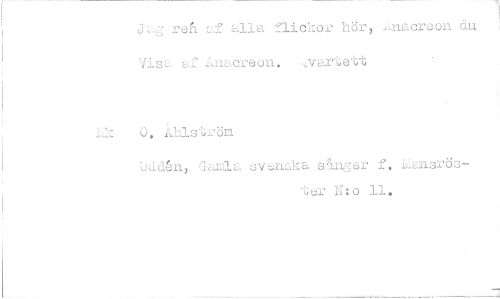 //// Jag r4. af alla flickor hör, Anacroon du Visa af Anacreon. .,,var'uett //// L2k U.• Ählst,röm //// Tidd6n, Gamla svenska sånger f. Insrös- //// ter N:o 11. ////