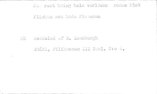 //// Ja., rest kring hela verldens ruriie klot Flickan som hade Fästeman //// 1,1k meddelad af B. Lundbergh //// Sbåhly 2ilikromen III Sard. N:0 6. ////