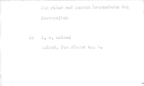 //// jag rider med posten hvarendaste dag Pos-pojken //// kk v. heland //// heland, Fem saner Op. 4, ////