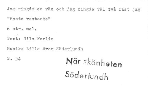 //// Jag ringde en vän och jag ringde väl två fast jag "Poste restanteu //// 6 str. mel. //// Text: Nils Ferlin //// Musik: Lille Bror Söderlundh //// S. 54 När .!7k.8n!.-j' ten //// Sre //// oderLneb ////