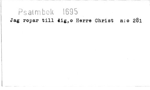 //// Psalmbok 1695 //// Jag ropar till dig,o Herre Christ n:o 281 ////