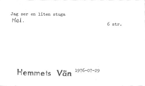 //// Jag ser en liten stuga //// Plet. 6 str. //// Hemmets Vän 1"6-"-" ////