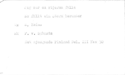 //// Jag ser ei stjerna falla //// 2is fällt //// eii ;;tern Lerunter //// ii. Heine //// u1k 2. v. Schantz //// Det sjungande Finland Del. III N:o 30 ////
