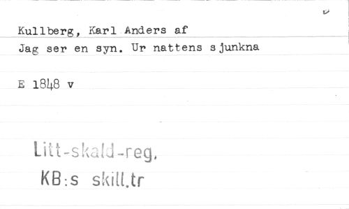 //// Kullberg, Karl.Anders af //// Jag ser en syn. Ur nattens sjunkna //// E 1848 v //// Litt-ska1J-reg, //// KB:s skitetr ////