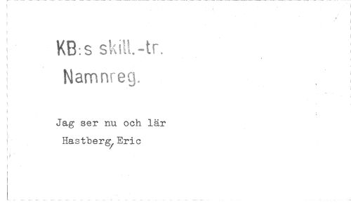 //// KB:s skill.-tr. //// Namnreg. //// Jag ser nu och lär Hastbereric ////