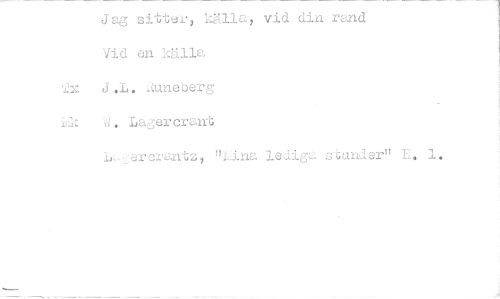 //// Jag sitter, källa, vid din rand //// Vid en hälla j.L..JAuneberg //// kW. Lagercrani; //// IlLercrantz, "Lina ledi a stunder" 1. ////