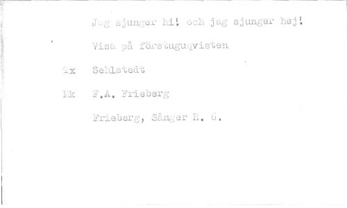 //// JLpsjunger hi: och jag sjunger hejl Visa på förs'cuguqvisten //// ix Seldstedt //// kkF.A. Frieberg //// Frieberg, Sånger R. 6 ////