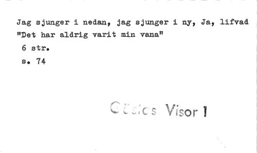 //// Jag sjunger i nedan jag sjunger i ny? Ja? lifvad "Det har aldrig varit min vana" //// 6 str. //// s. 74 //// 1:,or ////