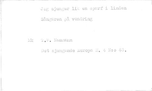 //// Jag sjunger lik en sparf i linden Sångaren på vandring //// Lac //// • Naufnann //// Det sjungande uropa J. 4 IT:0 43. ////