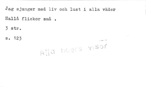 //// Jag sjunger med liv och lust i alla väder Hallå flickor små . //// 3 str. //// s. 123 ////