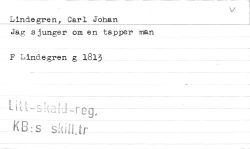 //// Lindegren, Carl Johan //// Jag sjunger om en tapper man //// F Lindegren g 1813 //// K B:s skilt tr ////