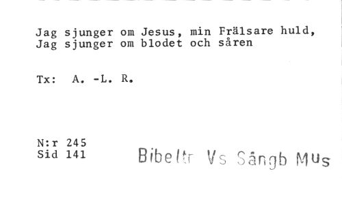 //// Jag sjunger om Jesus, min Frälsare huld, Jag sjunger om blodet och såren //// Tx: A. -L. R. //// N:r 245 //// Sid 141 Sångb Mus ////