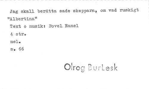//// Jag skall berätta sade skepparn, om vad ruskigt "Albertina" //// Text o musik: .2ovel_Ramel //// 4-strs //// mel. //// ss, 66 //// Lesk ////