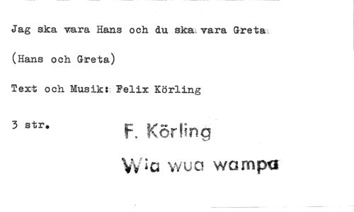 //// Jag ska vara Hans och du skat vara Greta (Hans och Greta) //// Text och Musik: Felix Körling //// 3 str. F. Körling //// Va vivel w a rn pti ////