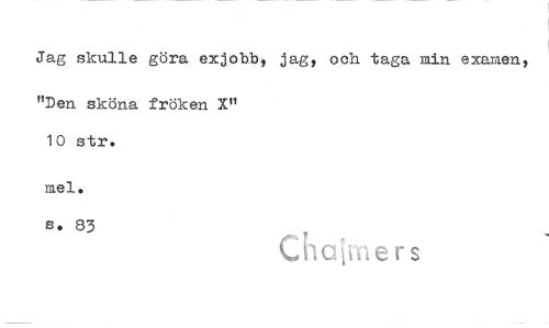 //// Jag skulle göra exjobb, jag, och taga min examen, //// "Den sköna fröken X" 10 str. //// mel. //// 5. 83 Chcfivners ////