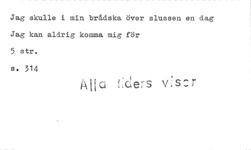 //// Jag skulle i min brådska över slussen en dag Jag kan aldrig komma mig för //// 5 str. //// s. 314 //// t:ders ////