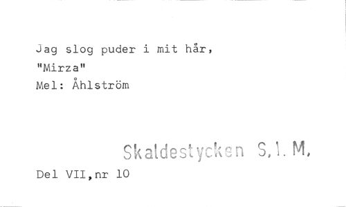 //// Jag slog puder i mit hår, "Mirza" //// Mel: Åhlström //// Skaidest ckGn S,1. NI //// Del VII,nr 10 ////