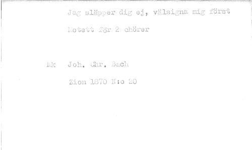 //// Jag släpper dig ej, välsigna mig först Lotett för 2 chörer //// Lik Joh, Jhr„ Bach non 1870 N:o 20 ////