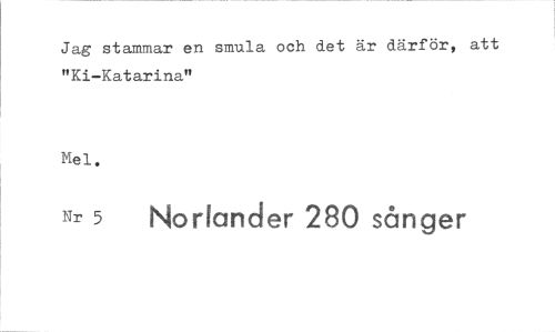 //// Jag stammar en smula och det är därför, att "Ki-Katarina" //// Me 1. //// Nr 5 Norlander 280 sånger ////