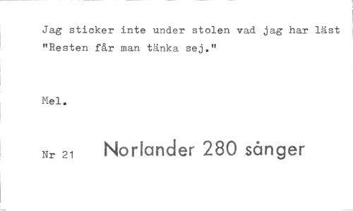 //// Jag sticker inte under stolen vad jag har läst "Resten får man tänka sej." //// Mel. //// Nr 21 Noriander 280 sånger ////