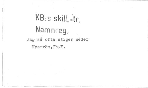 //// KB:s skilt. //// Namnreg. //// Jag så ofta stiger neder Nyström,Th.F. ////