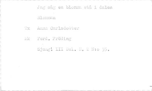 //// Jag såc en bienna stå i dalen lacmman //// 2x Anna Carlsdotter //// ik Ferd. Fröding //// Sjung: III Del. i. 2 N:o 55. ////