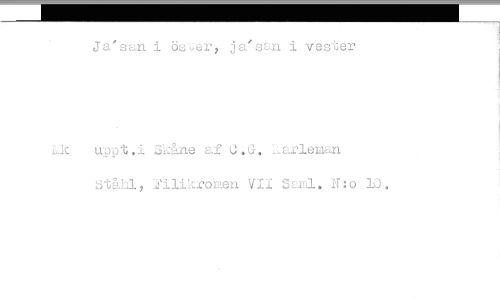 //// Ja'san i ösuer, ja'san i vester //// i.k uppt.i Skåne af U.G. :.arleman //// 2ilikromen VII Saml. N:o 10. ////