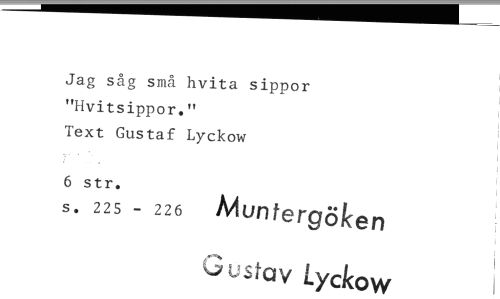 //// Jag såg små hvita sippor "Hvitsippor." //// Text Gustaf Lyckow //// 6 str. //// s. 225 - 226 Muntergöken //// L' tav Lyckow ////