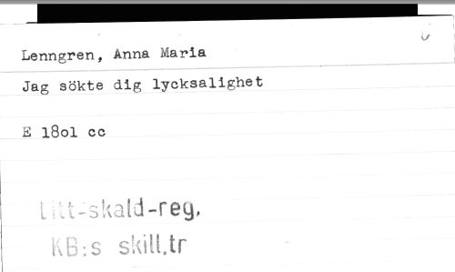 //// Lenngren, Anna Maria //// Jag sökte dig lycksalighet //// E 1801 cc //// -skatd-reg, //// KB:s skiti.tr ////