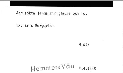 //// Jag sökte länge min glädje och ro. Tx: Eric Bergqvist //// 4.str //// HemmetsVän 4.4.1968 ////