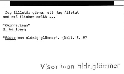 //// Jag tillstår gärna, att jag flirtat med små flickor smått ... //// "Kvinnsvisan" G. Wahlberg //// "Visor man aldrig glömmer". (D:1). S. 57 //// Visor bion .!dr.g!ömmer ////