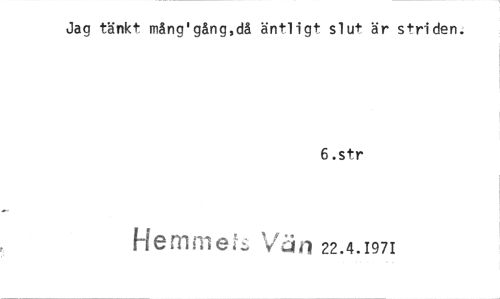 //// Jag tänkt mång'gång,då äntligt slut är striden: //// 6.str //// ',/;:ji1 22.4.1971 ////